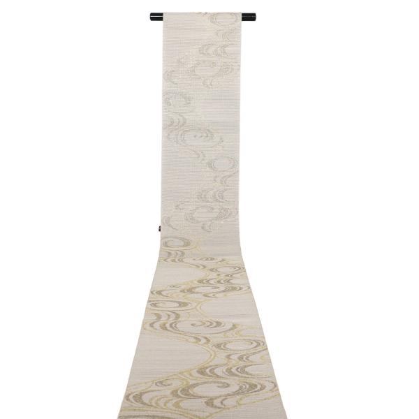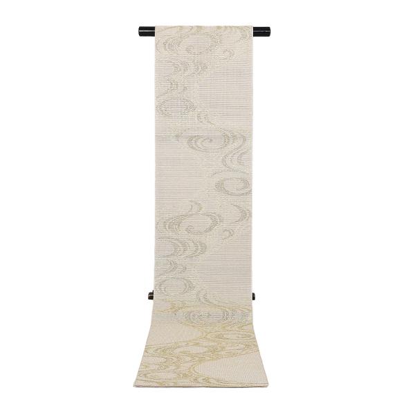 紗 袋帯 正絹 ベージュ 緑 金 流水 全通 Lサイズ F8753 未使用品 レディース シルク ギフト フォーマル 30代40代50代 送料込み