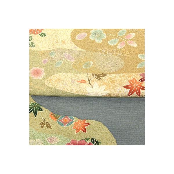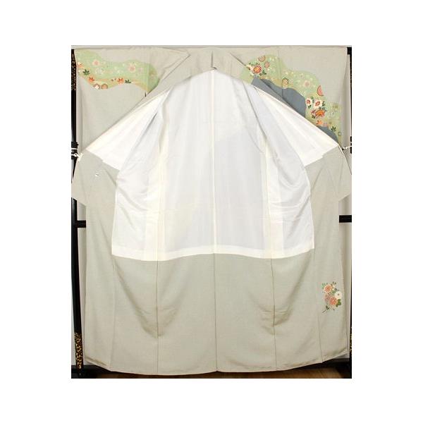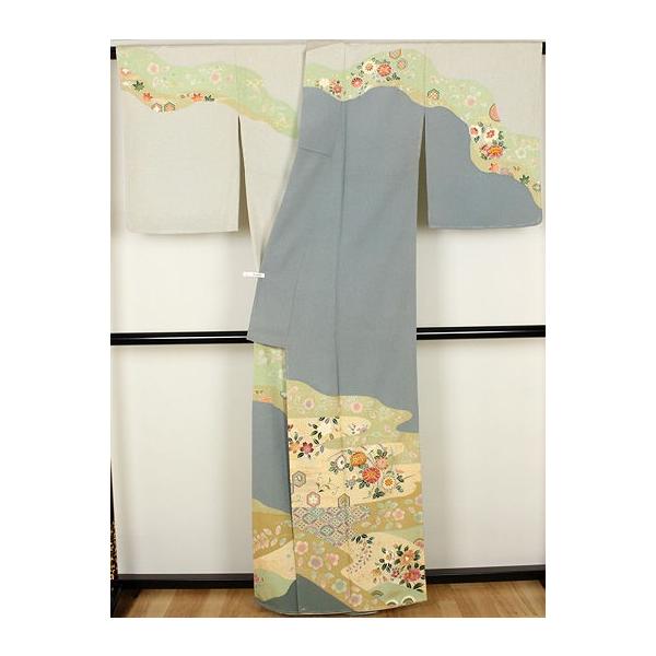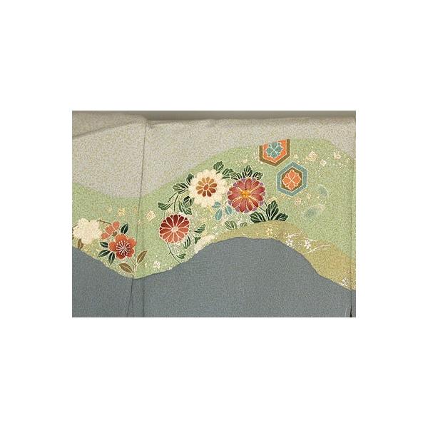 訪問着 袷 正絹 薄緑 緑 暈し 踊り子 桜 菊 菫 菖蒲 Lサイズ ki31962 未使用品 レディース シルク ギフト フォーマル 送料無料