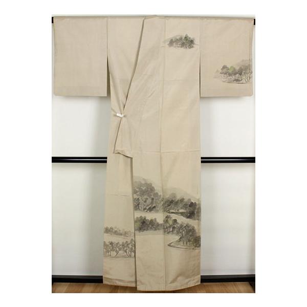 白山紬 訪問着 正絹 手描き山水画 ki21537 仕立て上がり お出かけはお着物で