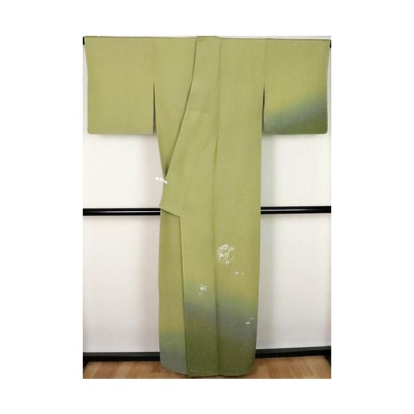 訪問着 袷 正絹 薄緑 刺繍小花縞 Mサイズ ki28477 美品 着物 レディース シルク ギフト 七五三 結婚式 入学式 卒業式 在庫限り 送料込み