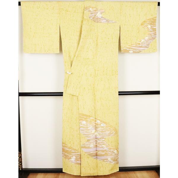 【送料無料】訪問着 正絹 葉柄流水 7号 ki25090 仕立て上がり お出かけはお着物で