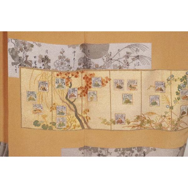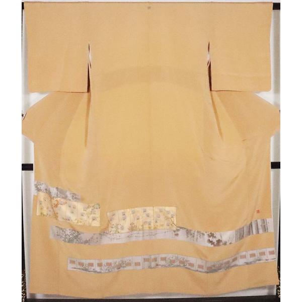 松尾光琳氏作 色留袖 袷 正絹 ベージュ 三十六歌仙 比翼仕立て Sサイズ ki25940 レディース 入学式 卒業式 結婚式 送料無料 美品