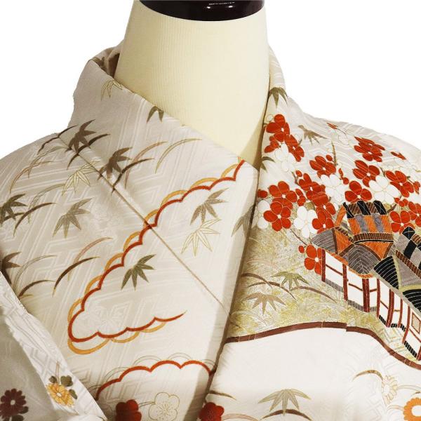 本振袖 袷 正絹 クリーム 金箔 茶屋辻 松竹梅 菊 菖蒲 本加工品 Lサイズ ki29531 美品 ふりそで レディース シルク ギフト 成人式 送料込み