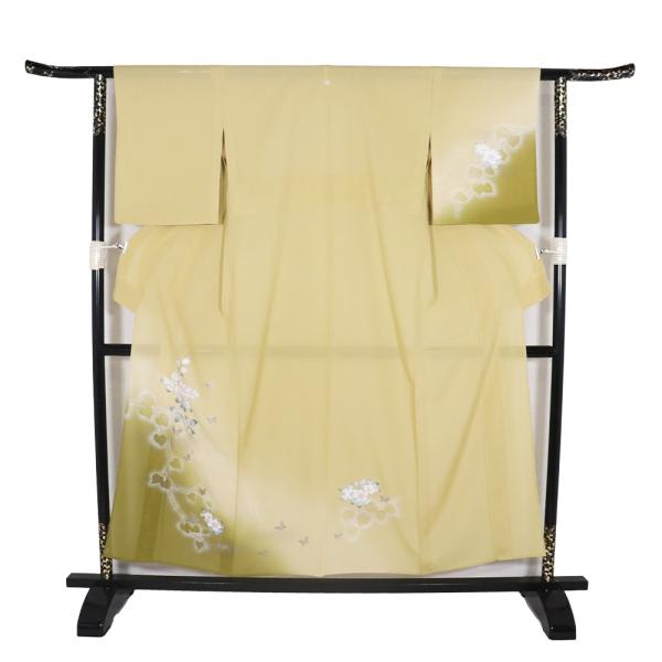 絽 訪問着 正絹 薄い抹茶色 抹茶色 箔彩 薔薇 桜 蝶 Sサイズ ki30892 未使用品 レディース シルク フォーマル 30代 40代 50代 送料込み
