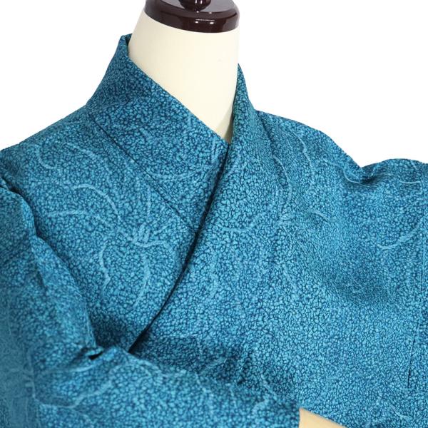 単衣 小紋 正絹 エメラルドグリーン 暈し 縫い取り 牡丹 7号 Mサイズ ki32041 美品 夏着物 レディース シルク ギフト カジュアル 送料無料
