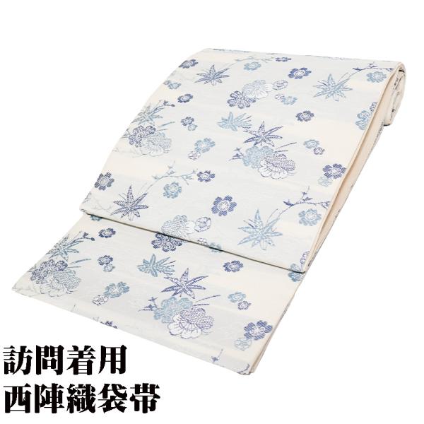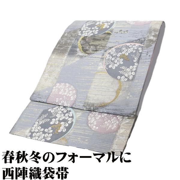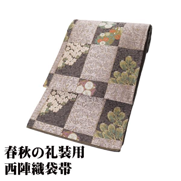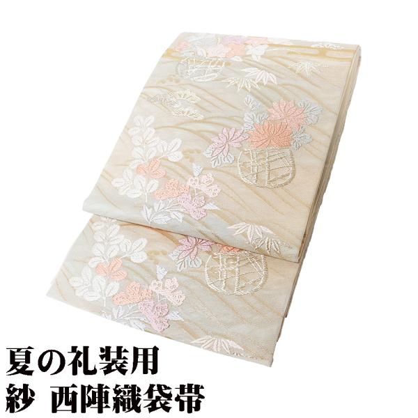 紗 袋帯 正絹 ベージュ 金 唐織 花かご 撫子 菊 桔梗 萩 オミナエシ 松竹 菖蒲 Lサイズ F8020 美品 フォーマル 30代 40代 50代 送料込み