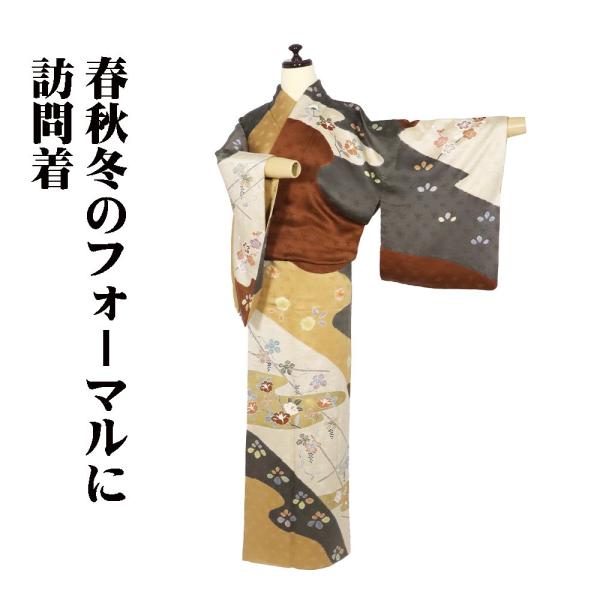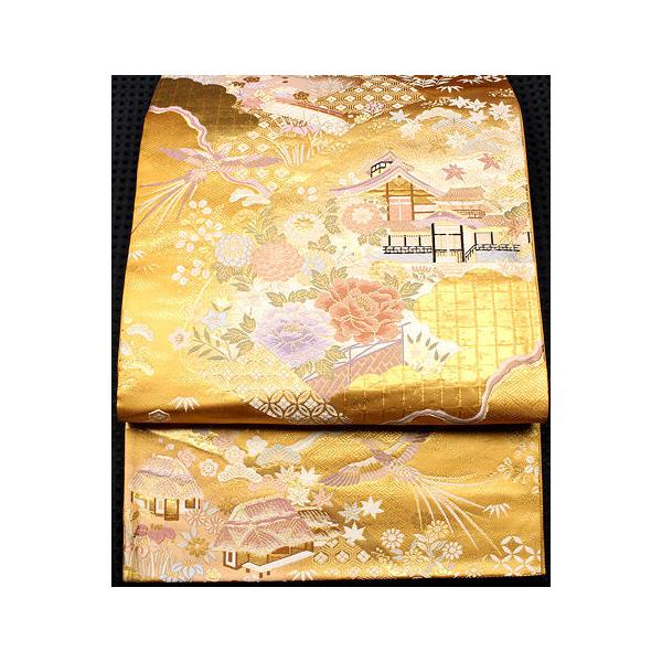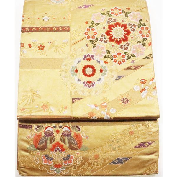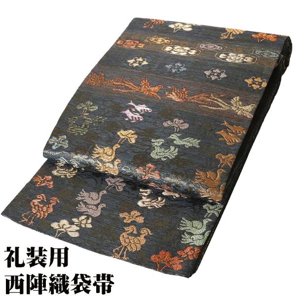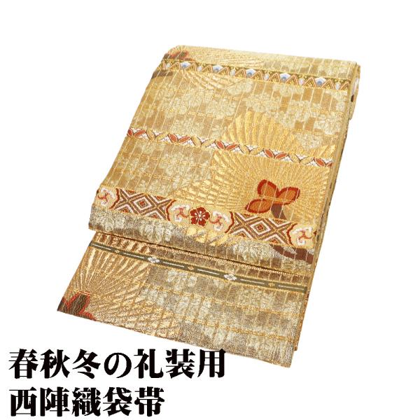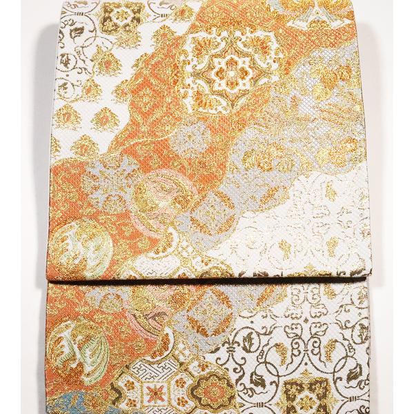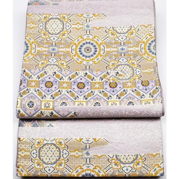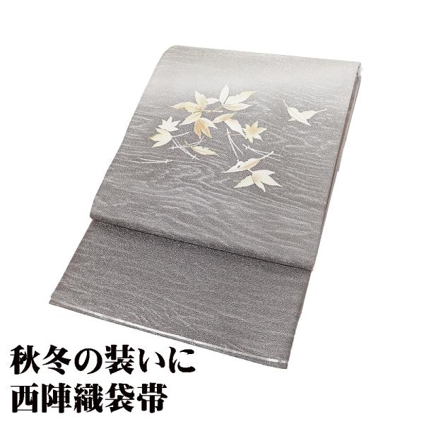 訪問着用 袋帯 正絹 グレー暈し 銀糸通し 紅葉 松葉 ロングサイズ 未使用品 F8311 レディース シルク ギフト 30代 40代 50代 送料無料