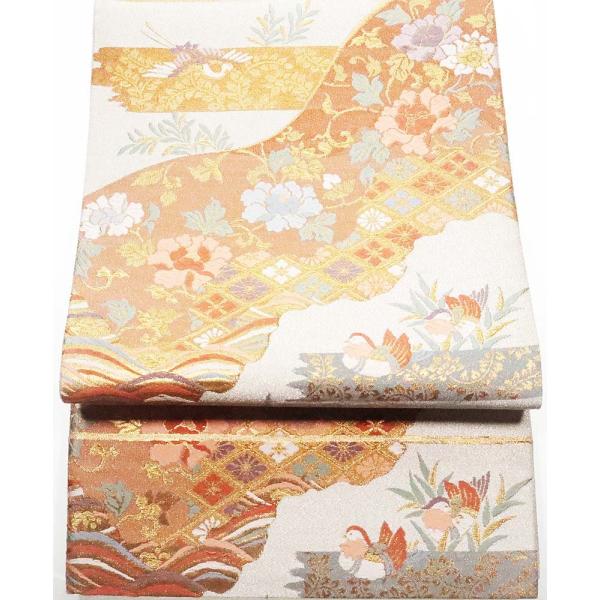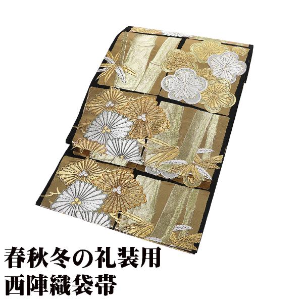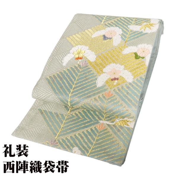 礼装用 袋帯 正絹 つづれ絹浮織 法輪 黄金糸 緑 金箔 唐織 松竹梅 Mサイズ F6646 新品 レディース シルク ギフト 七五三 結婚式 送料込み