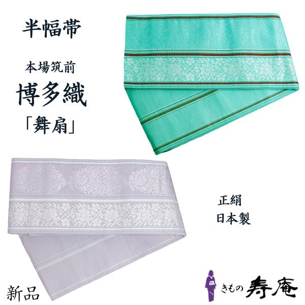 帯 半幅帯 正絹 リバーシブル 献上 白 四寸 約3.7m 本場筑前 博多 博多織 袴下用 浴衣 お稽古 40 50 60歳 舞扇 金証紙 小袋帯 花唐草間道 金証紙 新品 日本製