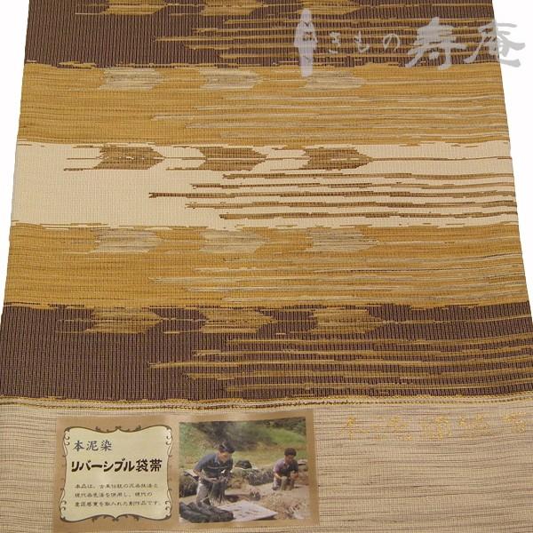 袋帯 本泥染め リバーシブル全通帯 矢模様 ベージュ お洒落帯 女性用 新品 未仕立 仕立て込み
