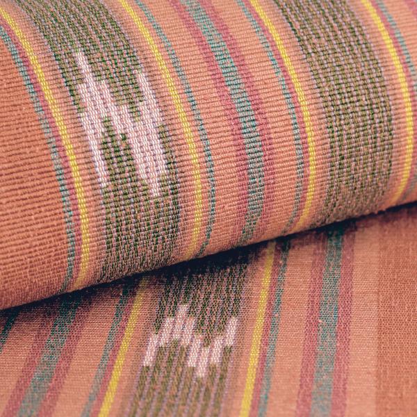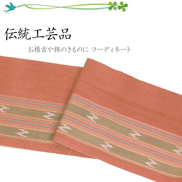 仕立込 琉球絣 八寸名古屋帯 紬帯 最高級 伝統工芸品 手織 カジュアル用 オレンジ 紅 あかね色 桃原厚吉 新品 未仕立 日本製