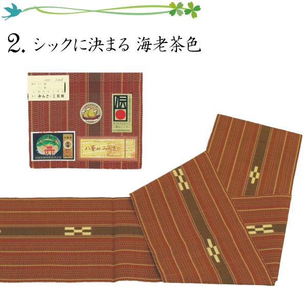 沖縄の伝統工芸、ミンサー織の半幅帯は、柔らかく軽やかな着心地が魅力です。