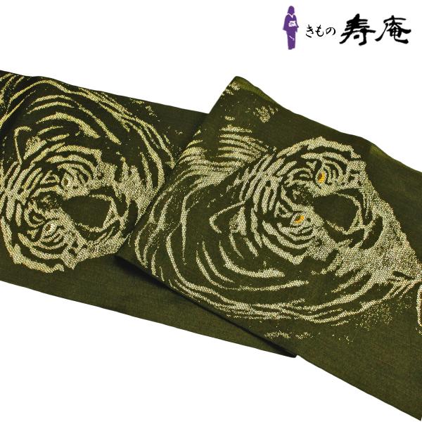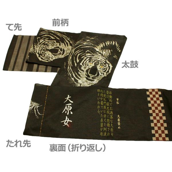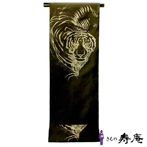 名古屋帯 レディース 黒地 虎 タイガー 仕立て込み 九寸 西陣 鷹匠 大原女染め カジュアル クリスマス お正月 パーティー 新品 日本製 2022 干支 寅年
