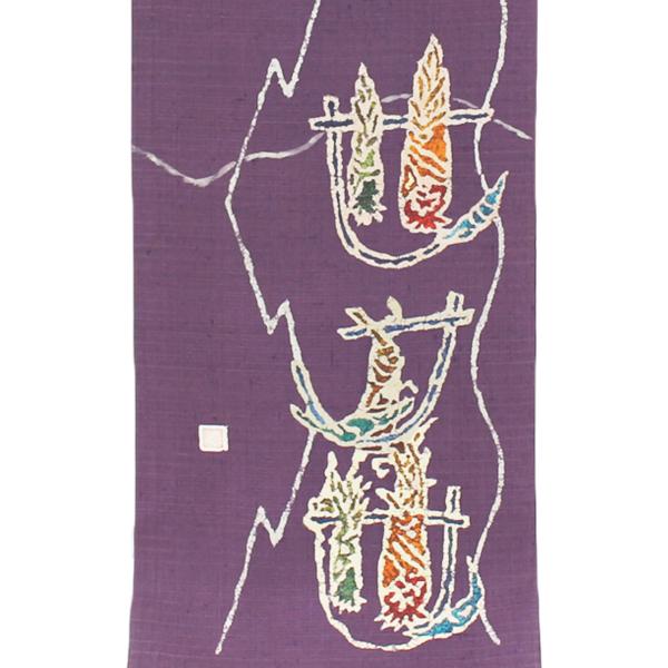 色は深みのある紫で野菜などを干しているモチーフは、遊び心と粋を演出しています。