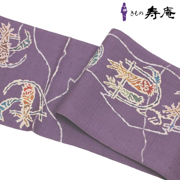 帯 仕立て代込 赤城紬 上州赤城座繰り紬 正絹 真綿紬 袋帯 お太鼓 袷用 単衣 三通太鼓 紫 パープル お洒落帯 小紋 紬 東レシルック 新品 未仕立