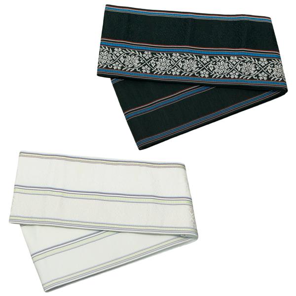 帯 小袋 博多織 半幅帯 四寸 博多 正絹 リバーシブル 袴帯 黒 白