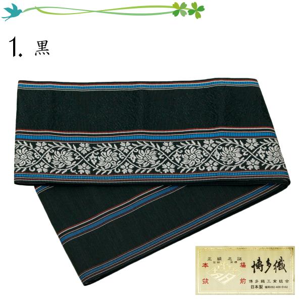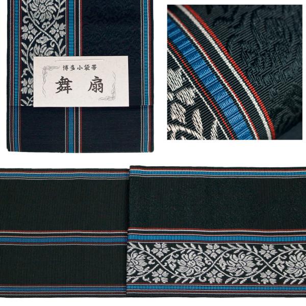 帯 小袋 博多織 半幅帯 リバーシブル 袴 黒 白 卒業式 入学式 お稽古 四寸 小袋帯 博多 正絹 袴帯 献上 唐草 井上絹織株 金証紙 新品 日本製