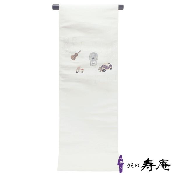 帯 九寸 名古屋帯 石垣島 川平織 からん工房 深石美穂 白 手織り 花織 草木染 6通 日本工芸会正会員 袷 単衣 新品 未仕立 日本製 送料無料 仕立て込み