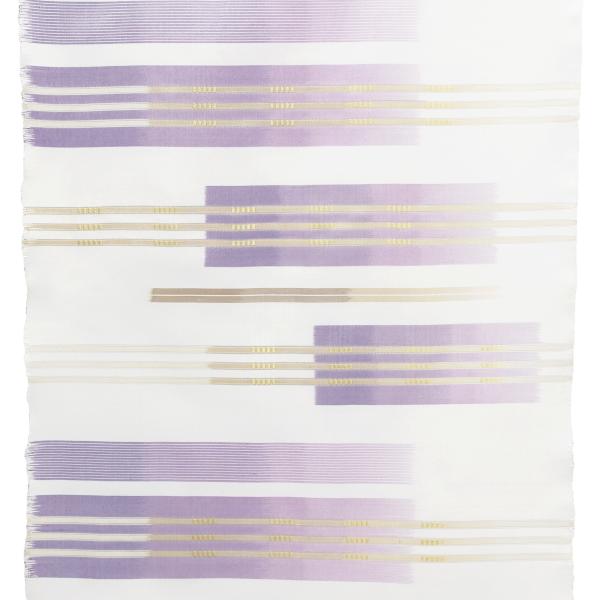 少し濃淡ある落ち着いた紫のグラデーションと金色のグラデーションの組み合わせの模様が、品の良い清楚を引き立てています。