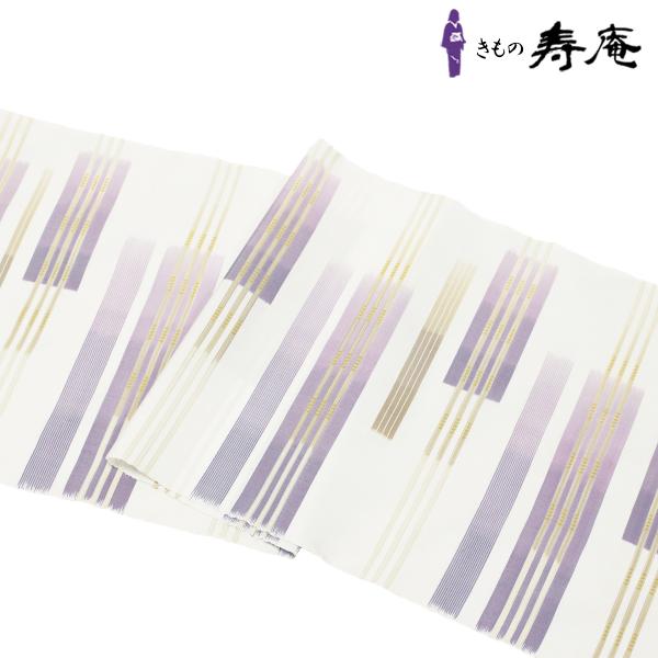 帯 半幅帯 正絹 リバーシブル 献上 白 四寸 約3.7m 本場筑前 博多 博多織 袴下用 浴衣 お稽古 40 50 60歳 舞扇 金証紙 小袋帯 花唐草間道 金証紙 新品 日本製