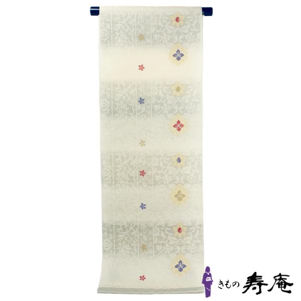 帯 半幅帯 正絹 リバーシブル 献上 白 四寸 約3.7m 本場筑前 博多 博多織 袴下用 浴衣 お稽古 40 50 60歳 舞扇 金証紙 小袋帯 花唐草間道 金証紙 新品 日本製
