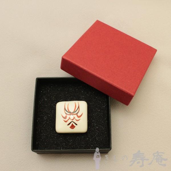 帯留め 歌舞伎 隈取 清水焼 白 陶器 三分紐用 新品