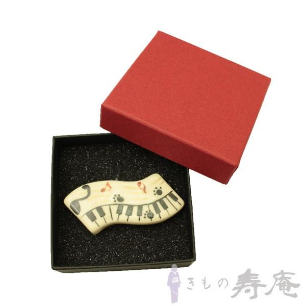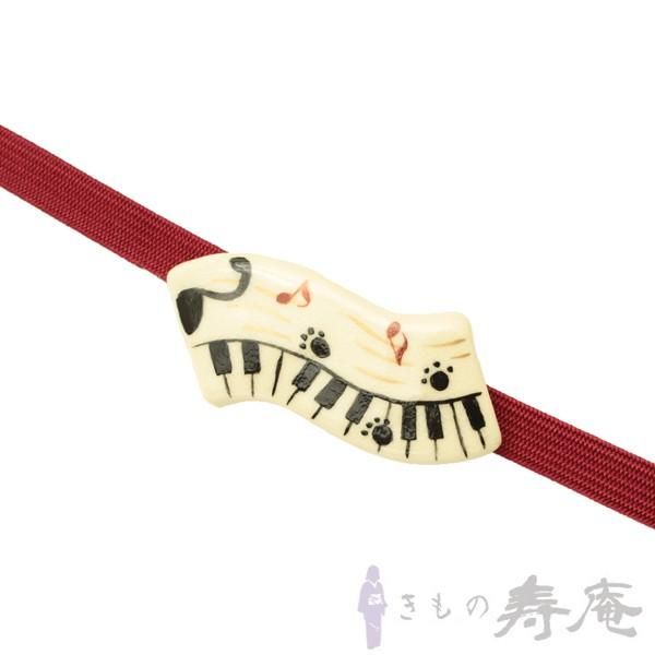 帯留め ピアノ 鍵盤 猫の足跡 音楽 音符 清水焼 陶器 クリーム色 おしゃれ帯留 三分紐用 新品 母の日ギフト
