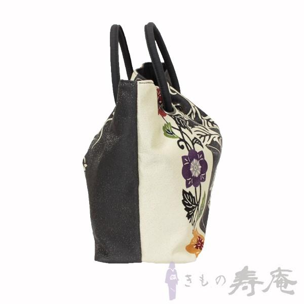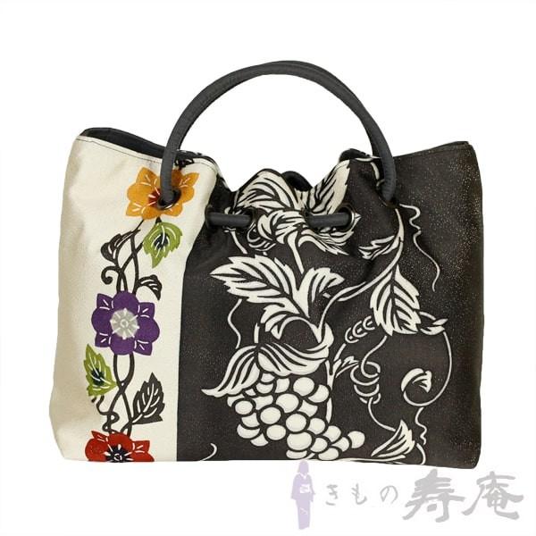 バッグ 和柄 葡萄 和装バッグ 栗山紅型 絹 トートーバッグ かわいい 和柄 ブドウ唐草更紗 ブラック ホワイト 和洋兼用 新品 日本製 母の日ギフト