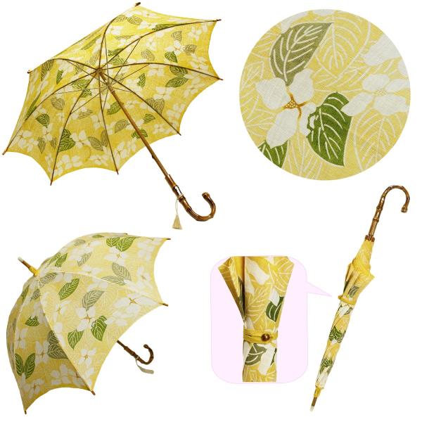 日傘 和柄 花柄 長傘 名入 イニシャル タッセル付 栗山紅型 黄 白 紫 ホワイト バンブー UV 麻 涼しい 軽量 山ぼうし 笹流れ さがり藤 月下美人 新品 日本製