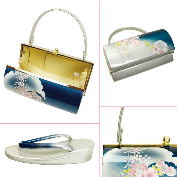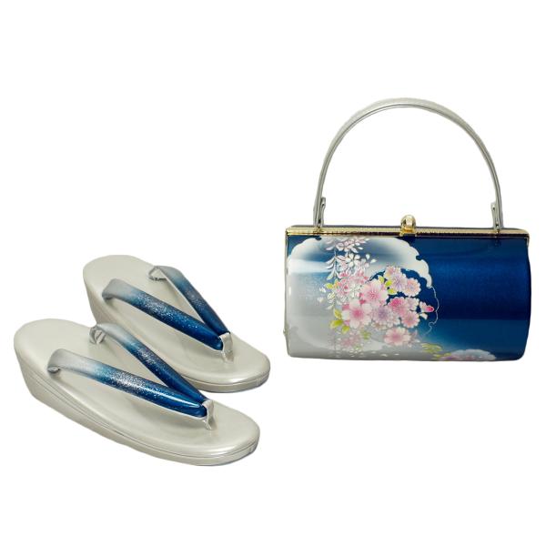 草履バッグセット フリーサイズ 桜 シルバー 銀 ブルー 紺 雪輪 コバルトブルー フォーマル 礼装用 振袖用 成人式 結婚式 訪問着用 上品 かわいい 新品 日本製