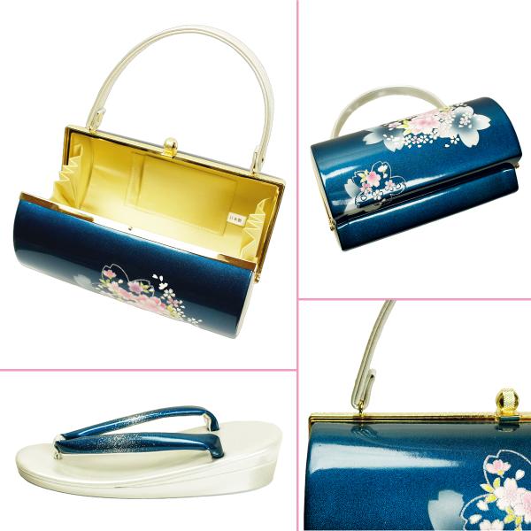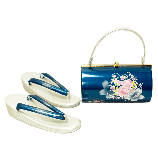 草履バッグセット フリーサイズ 桜 シルバー 銀 紺 コバルトブルー フォーマル 礼装用 振袖用 成人式 結婚式 訪問着用 上品 かわいい 新品 日本製