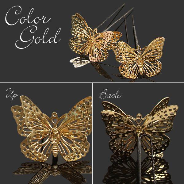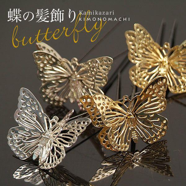 成人式 髪飾り uピン ゴールド シルバー 蝶「蝶々 ゴールド シルバー」全2色 浴衣 振袖 ポイント髪飾り 卒業式 袴 着物