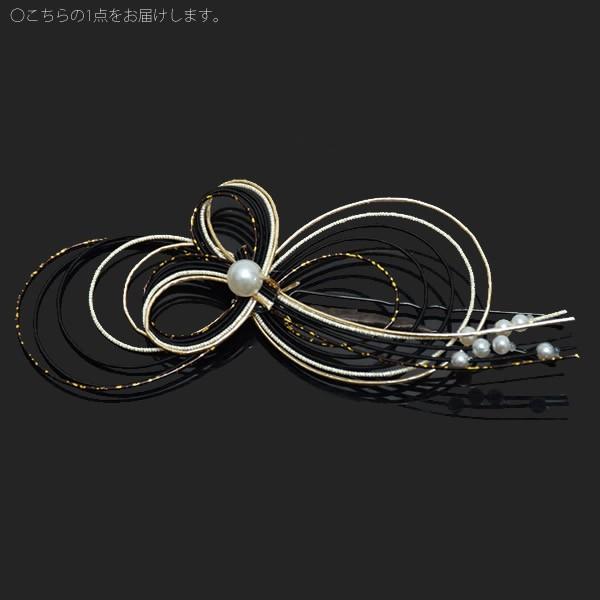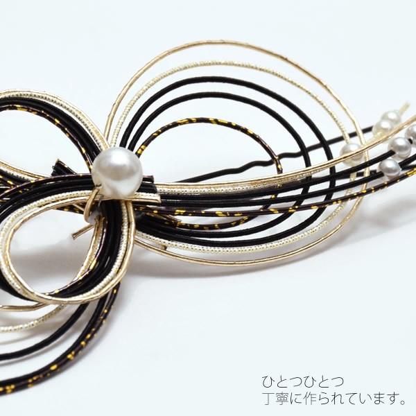 成人式 髪飾り 水引き 髪飾り「黒×ゴールド」ヘアアレンジ ポイント髪飾り Uピン髪飾り 振袖 袴 成人式 卒業式 (UP-3)<H>