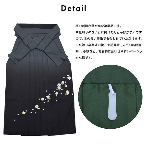 卒業式 袴 大学生 小学校 小学生 先生 教員 レディース 単品 4color ぼかし刺繍 グラデーション 桜 刺繍 袴単品 黒グレー 緑 エンジ 紫 S M L 2L レディース