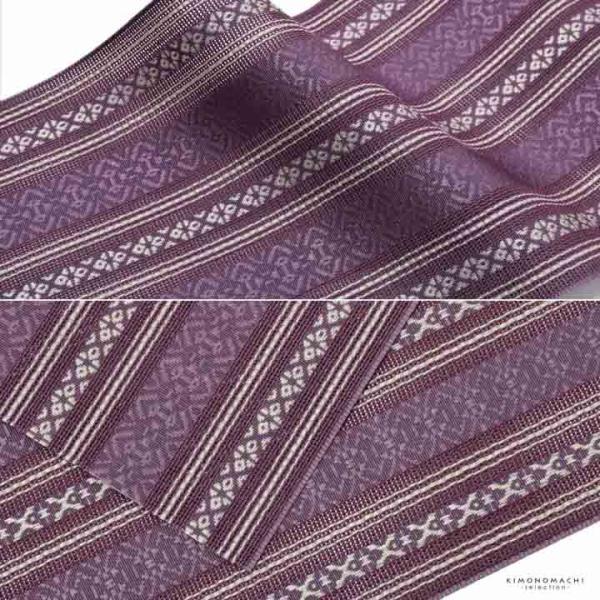5.白茶×紫…ややグレイッシュなベージュの地。鈍い紫色の献上柄が織り出されています。