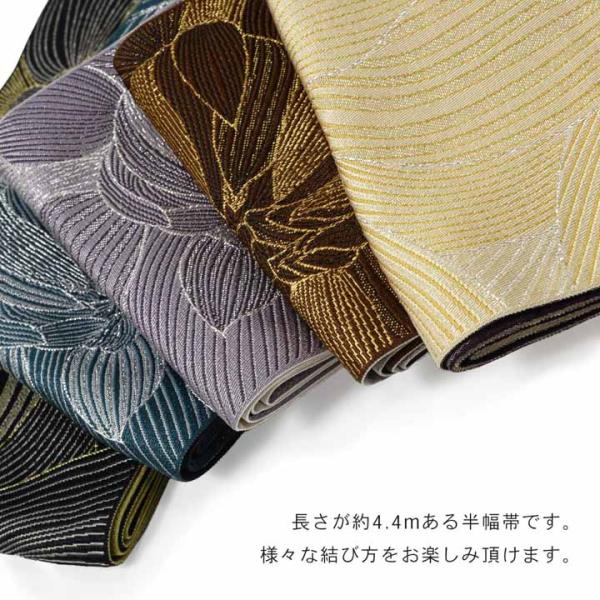 半幅帯 オルザ oluza oruza 単品「菊花 生成り色・鉄色・青碧・薄藤色・茶色」日本製 細帯 着物 浴衣に ポリエステル帯 半巾帯(メール便不可)