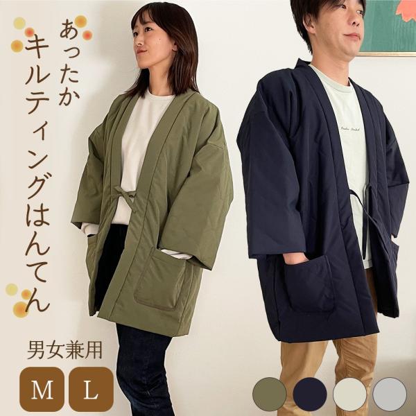 【 はんてん 】 あったか キルティング メンズ レディース 男女兼用 袢纏 送料無料 冬 ちゃんちゃんこ シンプル 無地 綿 ボア カーキ 茶 紺 アイボリー グレー