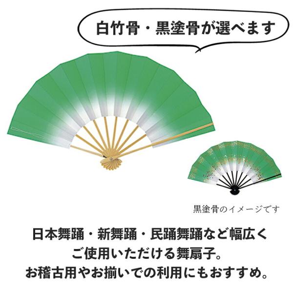 舞扇子 あけぼのぼかし グリーン 白竹 黒塗骨から選べます 緑 扇子 せんす 踊り 用 日本舞踊 あけぼの 練習 舞台 お揃い 白竹 黒 塗骨 お揃い お稽古 ぼかし