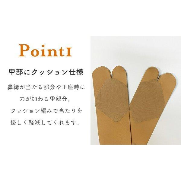 着物を着る人のことをとことん考えて作られたこのタイツは、草履の鼻緒や正座時に床があたる足の甲部分をクッション編みにして肌あたりを軽減してくれます