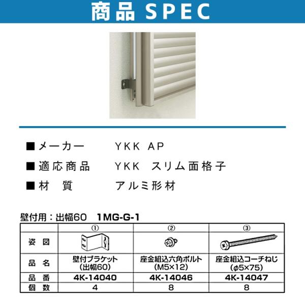 YKKAP スリム面格子 壁付ブラケット 1MG G-1 4個 出幅60mm 多機能ルーバー 面格子 ykk 壁付け用 取付け 部品 金具