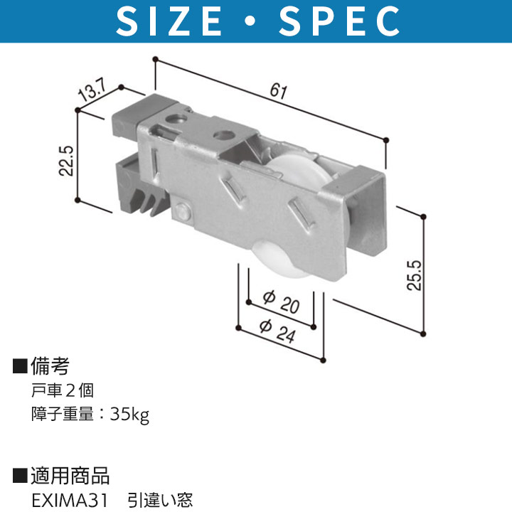 ■備考:障子重量:35kg、戸車径:20、内車径:24