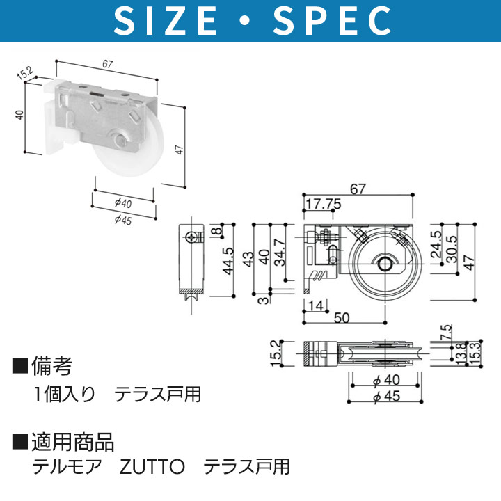 YKKap サッシ戸車 HH2K19844 個 YS(シルバー) 窓 引違い窓 テルモア ZUTTO テラス戸 HH-2K-19844