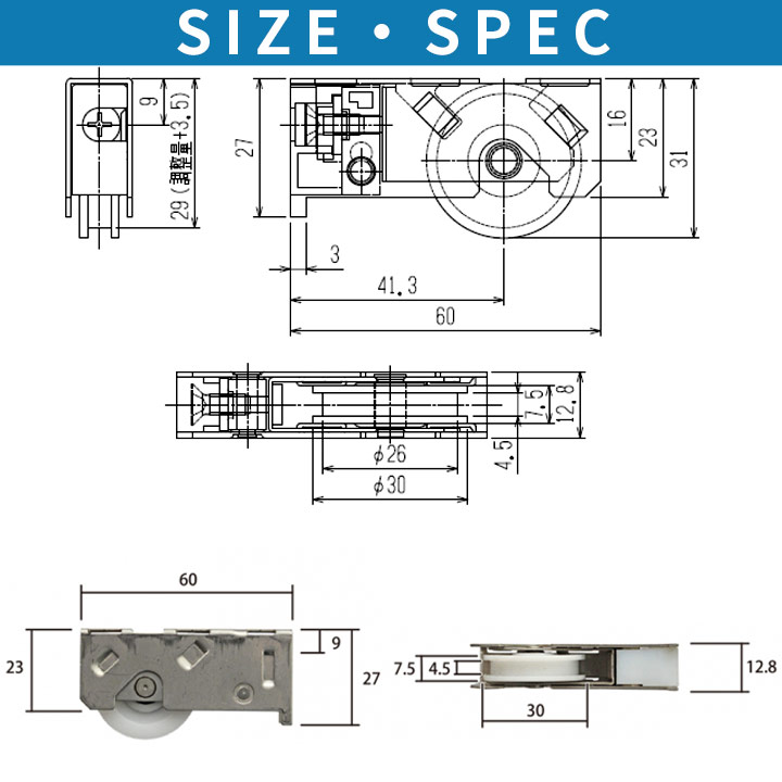 HH2K2512B 調整戸車1個入り 戸車 サッシ 交換 部品 YKK ap