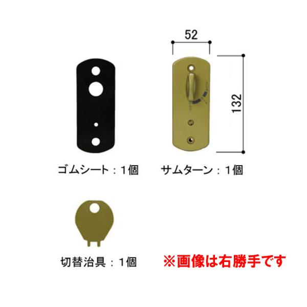 ■入数:サムターン1個、ゴムパッキン1個、左右勝手切替治具1個、取付ねじ2本