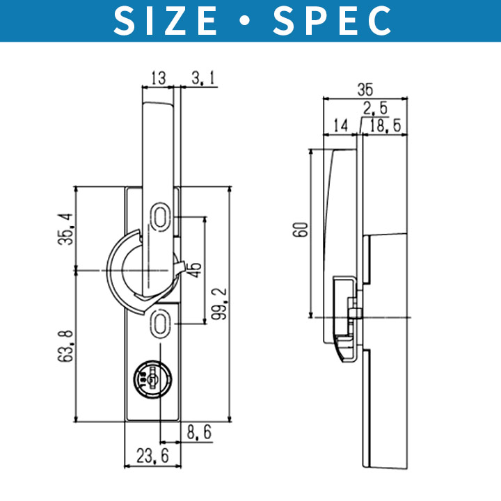 ■備考:ノブ長さ:60mm、ビスピッチ:45