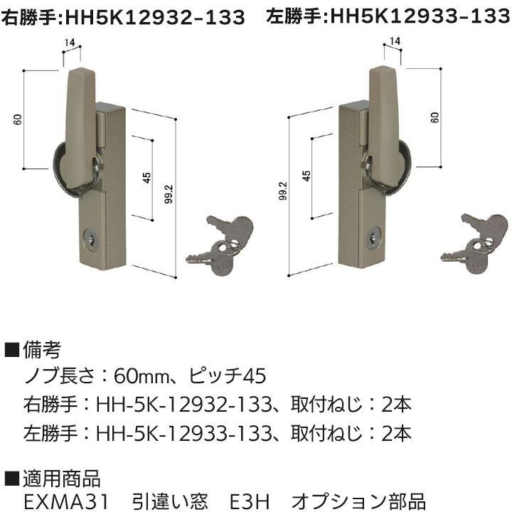 HH5K12932-133 HH5K12933-133 鍵付きクレセント