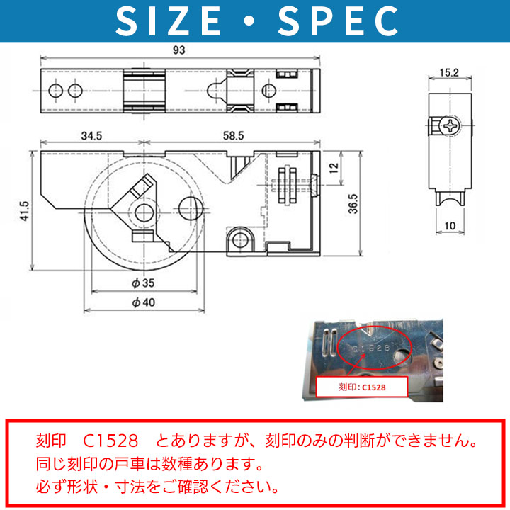 ■備考:C1528の刻印ありますが同じ刻印の戸車は数種類あります。必ず寸法、形状をご確認ください。