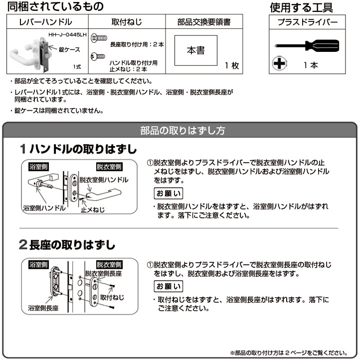 YKK AP レバーハンドル 純正品 HHJ0445LH 【交換要領書付き】 ハンドル ワイケーケー 浴室ドア 部品 浴室折戸 サニセーフ K-36678 K-19043 2K-11512 サムターン
