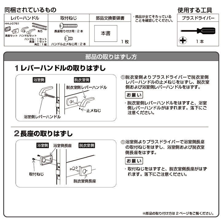 YKK AP レバーハンドル 純正品 HHJ0761【交換要領書付き】 YBHHW-HHJ-0761 浴室折戸 浴室 浴室ドア サニセーフ浴室ドアSタイプ サニセーフ 2K-19035