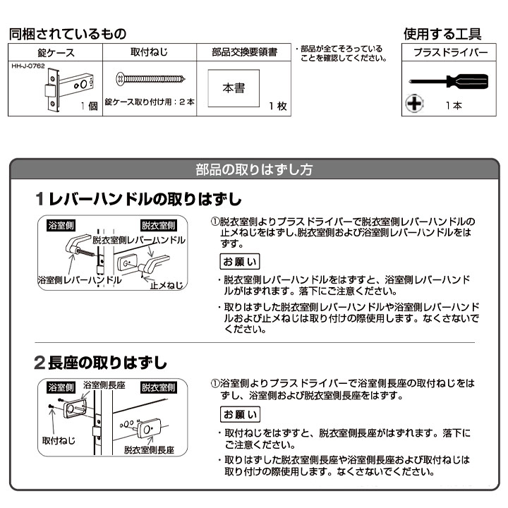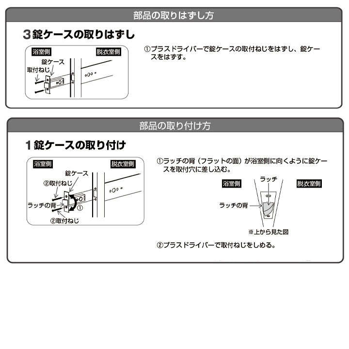 YKK AP 錠ケース 純正品 HHJ0762【交換要領書付き】 YSHHW-HHJ-0762 浴室折戸 浴室 浴室ドア サニセーフ浴室ドアSタイプ サニセーフ 2K-19035